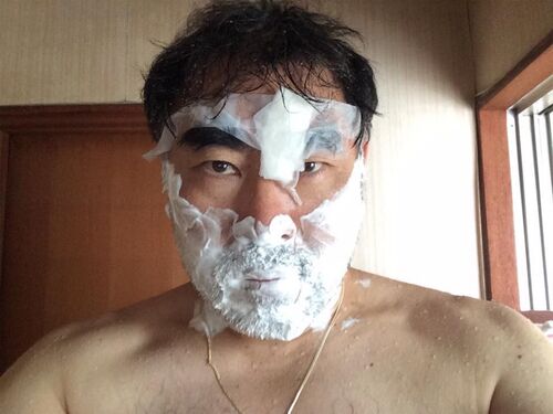 8/11/17 午後になりましたので約束通り、ヒゲ剃ります。FBFの息子さん、まだ若いのにエステでヒゲの脱毛したそうです、気の毒に。 彼はもう、こんなに楽しいヒゲ遊びができません。これから恩師のお別れ会に行きます。秀人くん、来ないかい?